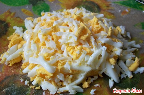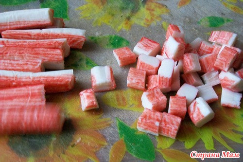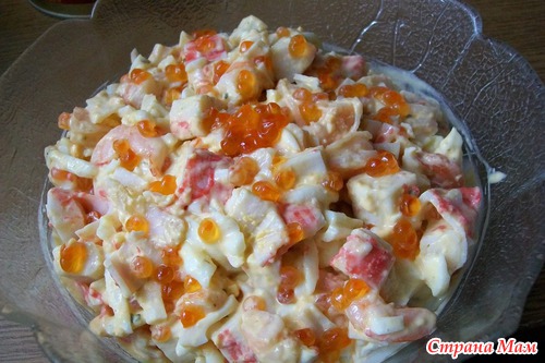 "+"- майонеза совсем чуть чуть и можно добавить кальмаров...