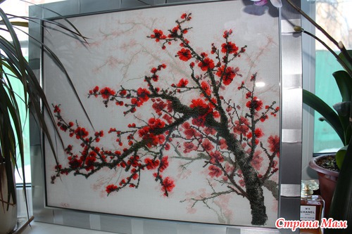 сакура. бисер и частичная вышивка мулине. на солнце потрясно!