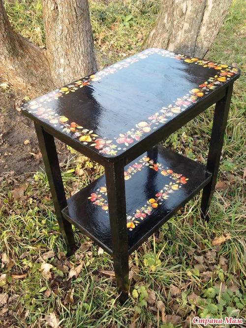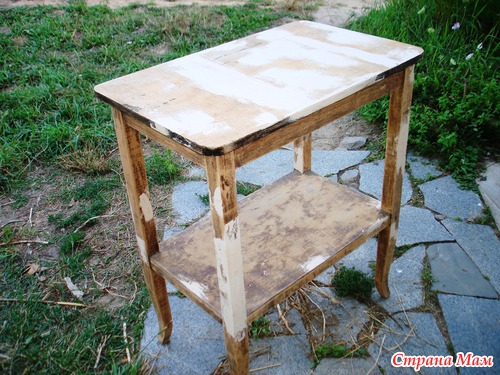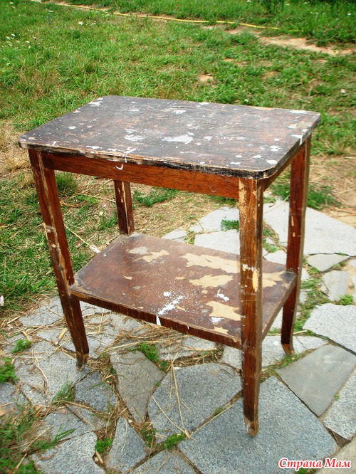 После того, как муж поотбивал и по отрывал доски (моей силы не хватило), столик стал таким: