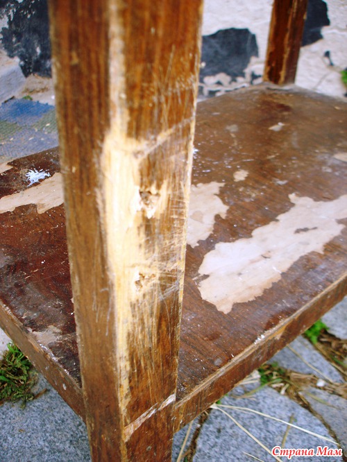 Достался мне по наследству столик. Ничего примечательного, единственный плюс - из дерева. А минусов - куча. Расшатанные ножки, сбитые досками и толстенными гвоздями "заподлицо". Весь в шрамах, с неровной столешницей, в отдельных местах - без лака и краски, а кое-где с пятнами инородной краски (ремонт на нем делали).