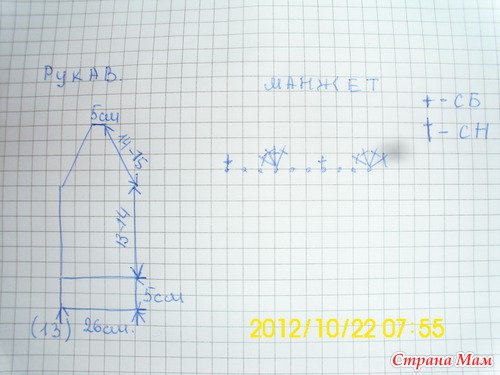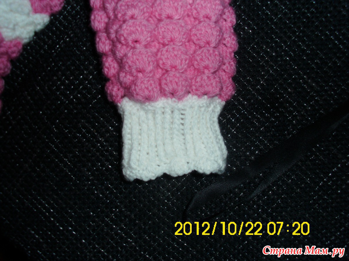 И дальше вяжу только спинку и полочки отдельно... Далее получаю нужную высоту рукавчика и соединяю все вязание...