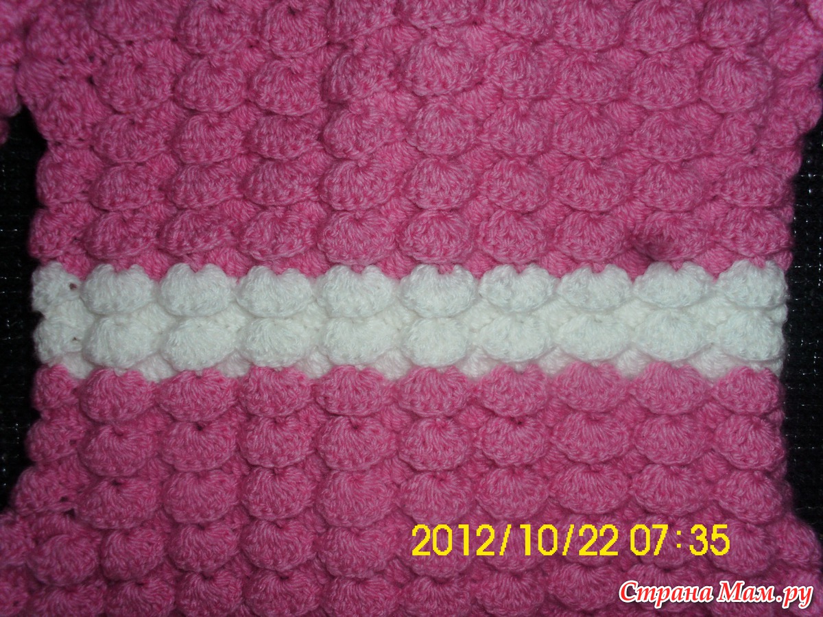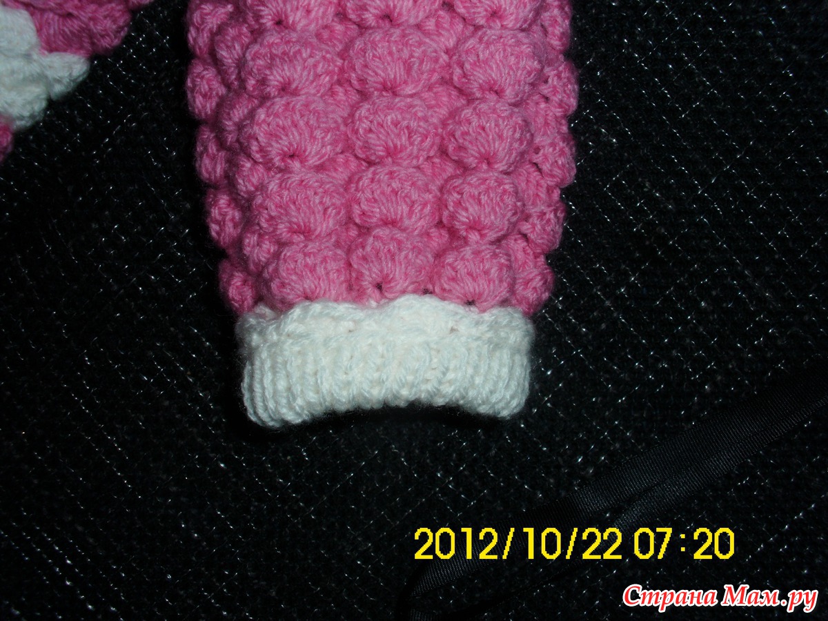 Низ пальтишка и воротник провязываю тоже таким же узором белыми ниточками 2ряда..