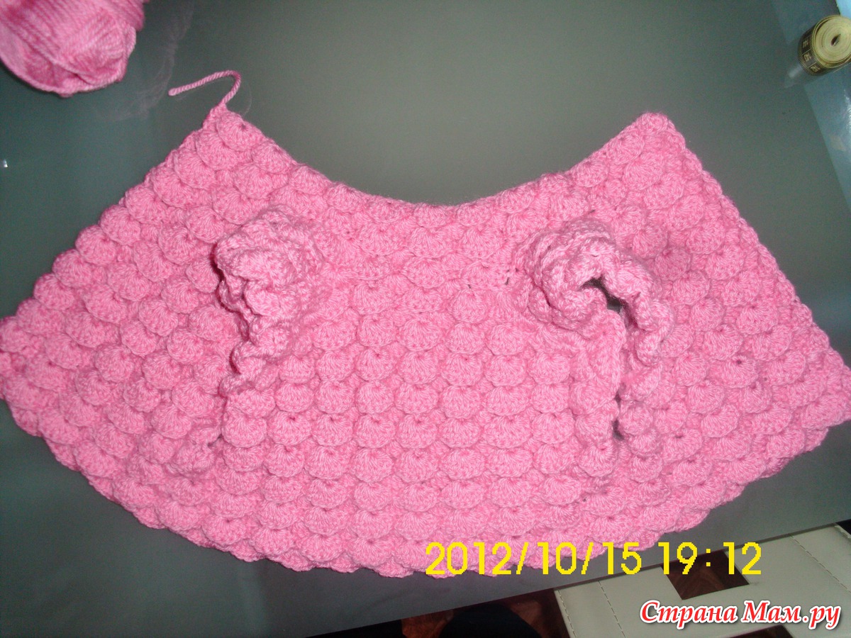 На возрост 2-2.5. Набрала 73 Вп. Связала воротничок 6см. А дальше разделила на четыре часть как в обычной кокетке и вязала как по схеме..