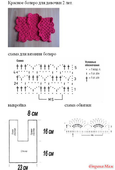 я сейчас такое же болеро вяжу на утренник, только цвет другой. По размерам как здесь вяжу, но нам как раз, хотя здесь написано на 2 года, а нам 1,5 еще, но уже не стала распускать перевязывать больше, на утренник будет хорошо, а потом распущу и больше свяжу.