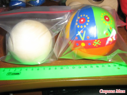 мячи звенящие(малый неокрашенный и большой окрашенный)