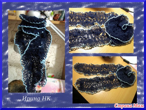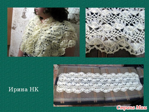 А это я осваивала вилку. Девочки, влюбилась! Так просто и быстро! Никогда не думала, что моих сил хватит на палантин. А тут так затянуло, что ниток не хватило, а то бы большего размера связала.