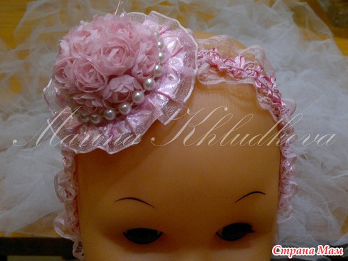 Давно ничего не делала, а тут выдалась возможность для маленькой 7-ми месячной девочки сделать вот такую повязочку на голову со шляпкой, малышка с родителями идет на свадьбу.