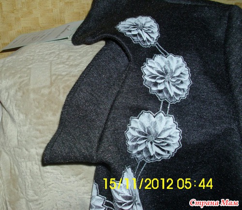 А еще, на цветочки нанесен серебряный блеск, на серединку и по контуру цветочков, надеюсь при стирке они останутся на месте, т. к. делают платье "оживленнее".