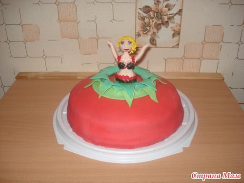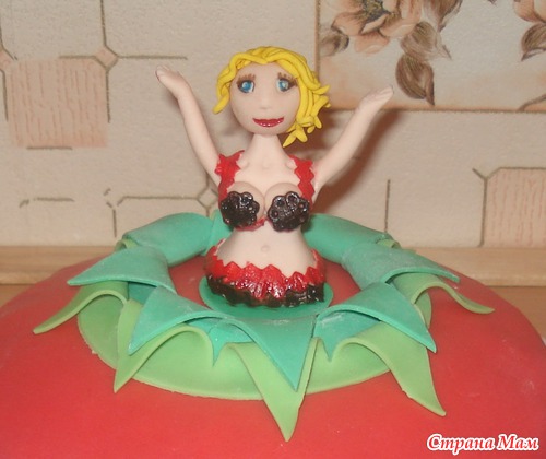 и в 22,00 торт уже был готов. Видимо человек, которому делала этот подарок такой легкий и работать для него тоже было легкоПроблемы были только с нарядом для девушки и рисованием ее глаз