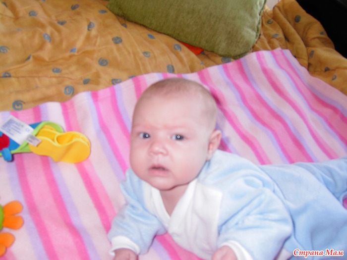 .Я совсем недавно понял что у меня есть ручки.Они такие вкусные .А ещё ими можно хватать всякие вещи но это пока у меня плохо получается.Ну ничего я ещё научусь.А ещё я умею поднимать головку- высоко высоко....