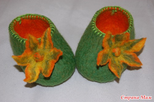 Приветики всем, сегодня решила свалять тапотушки для своей доченьки. Вот что у меня получилось, теперь решительно буду переходить на большие размеры))))).