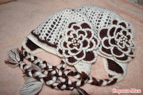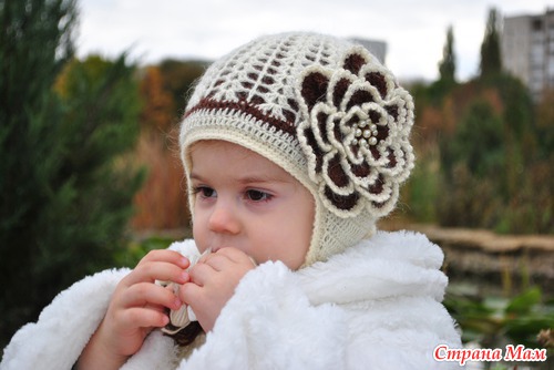 только лепестки вяжите в шахматном порядке, а не один за другим... и я начала с 5 в 1х 2х рядах, а последующие 2 увеличила до 7, и еще обвязка пико)))) схемы к самой шапочке пока нету, вязала по фото... постараюсь нарисовать))) просто у меня уже нет этих шапочек, их, надеюсь с удовольствием носят сестрички))))