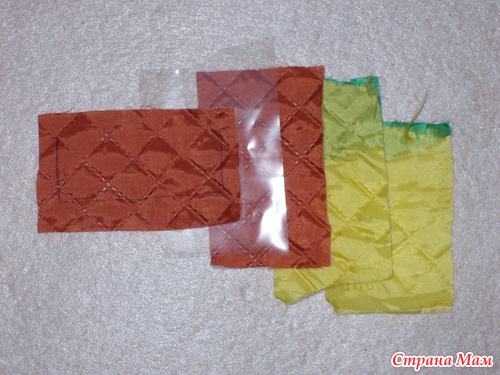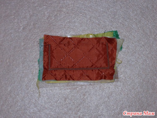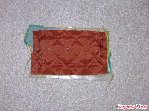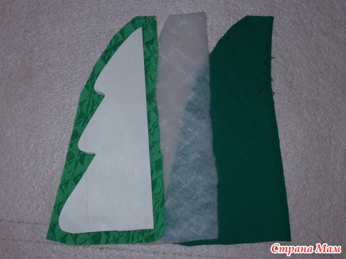 В качестве вкладки использовала подкладочную ткань на синтепоне. Можно использовать синтепон или любую плотенькую ткань (для плотности елочки и сохранения формы)