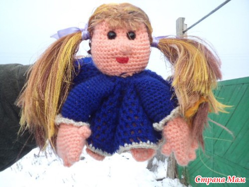 Первый раз вязала куклу после 30. Девочки правда, что каждая игрушка именно кукла имеет свой характер. Лицо уже было готово. Занялась причёской вот тут и началось. То это не так, то то не эдак. Девица с Характером.