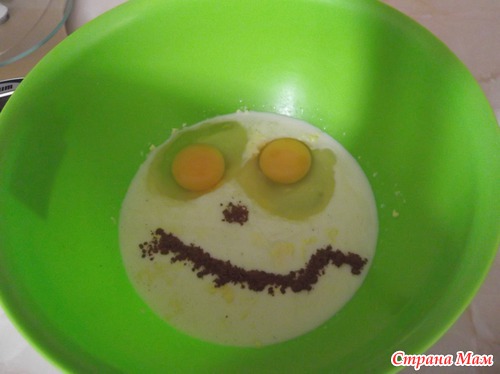 Масло, молоко комнатной температуры, сахар, яйца и корицу смешиваем венчиком или миксером пару минут.