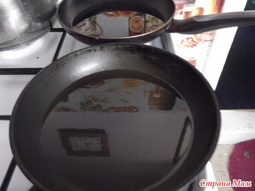 Разогреваем масло для жарки. Я жарю в сковородке, наливаю сантиметра полтора масла.