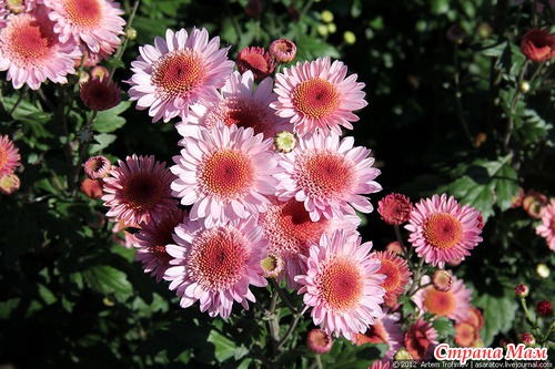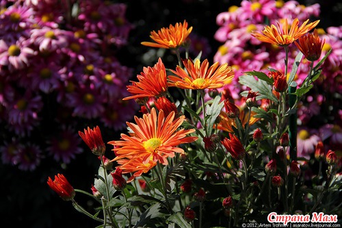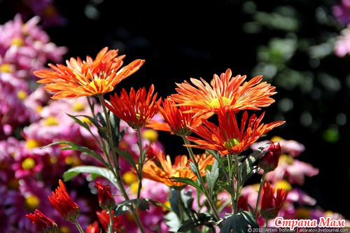 Опытные садоводы умело комбинируют между собой хризантемы разных цветов.