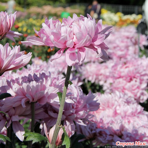 Крупные хризантемы особенно популярны у посетителей сада.