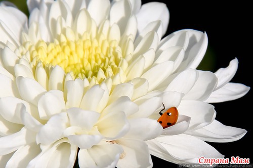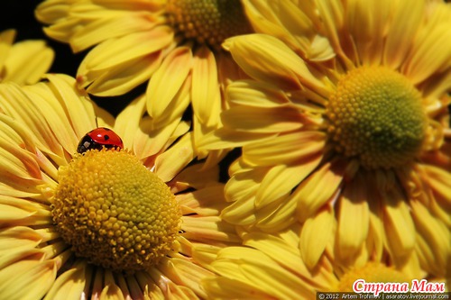 Божья коровка на жёлтой хризантеме