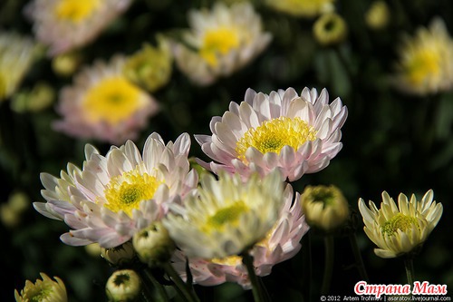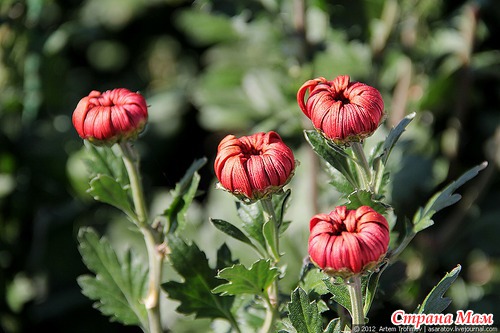 Полураспустившиеся бутоны хризантем выглядят очень изящно.