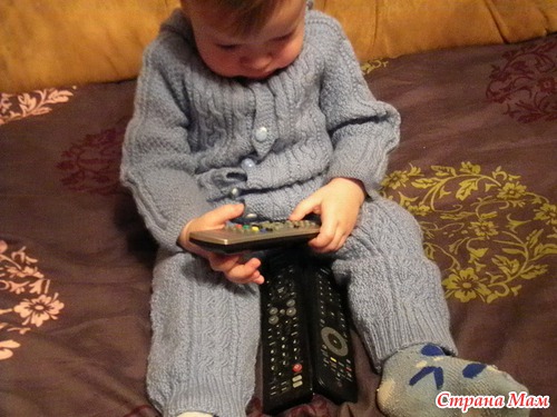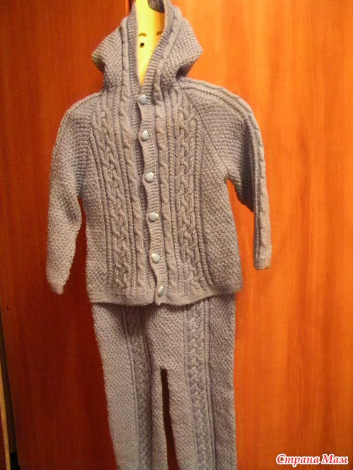 Вот связался еще один костюмчик для моего сына. Пряжа Пехорка "Детский каприз", ушло примерно 500 гр. Цвет конечно не такой, не серый, а синий.