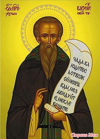 Иже на земли леганием,/ пощением же и бдением/ тело твое изнуряя, преподобне,/ вся плотская мудрования умертвил еси,/ и исцелений струя независтная явился еси/ верою притекающим к тебе, Варлааме отче наш,/ моли Христа Бога// спастися душам нашим.