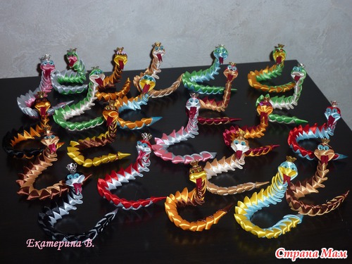Змейки - сама подсмотрела МК.... вот ссылка: http://kolobok-kolobok.ru/master-klass/zmeyka-v-tehnike-kanzashi