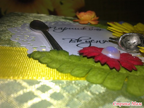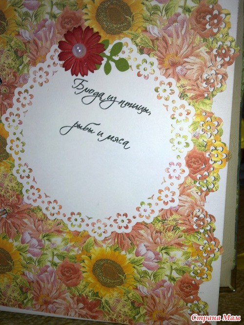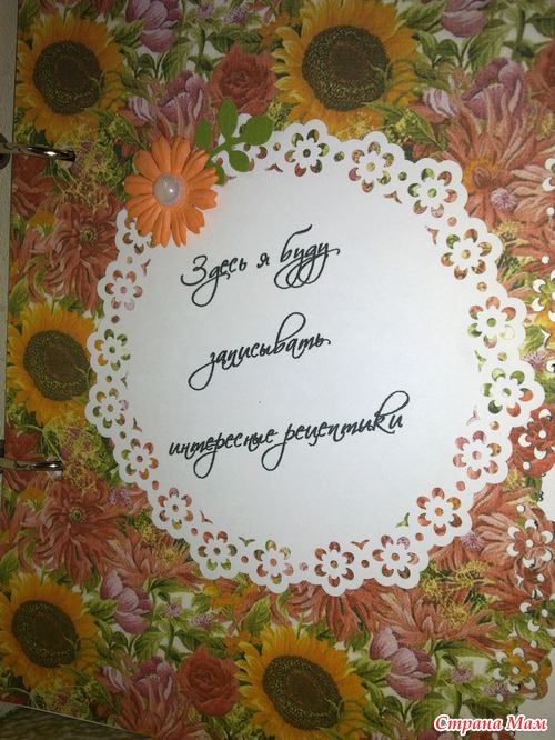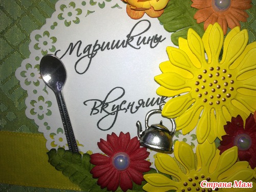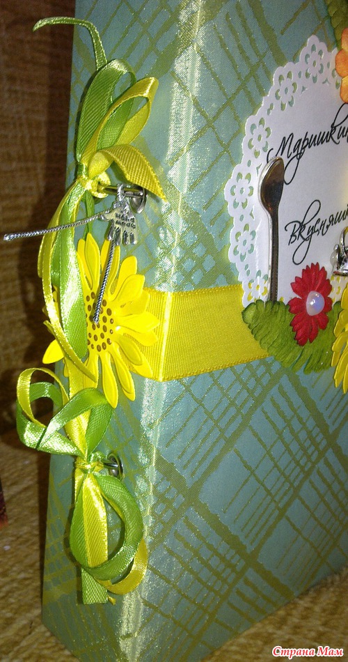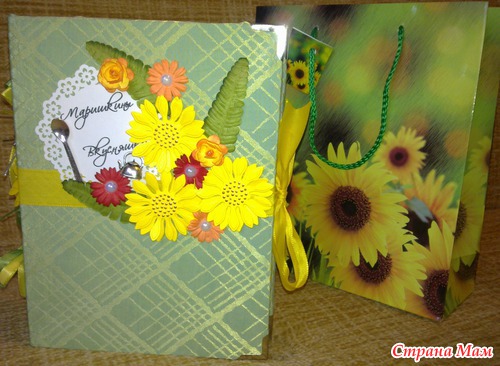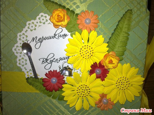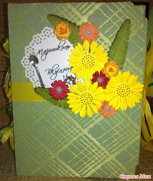 Книгу уже подарила, подржка в восторге!!! Мы к ней правда на заднем кольце добавили серебряную петельку, чтоб она не просто лежала, а красиво висела на своем месте. Тем более, что она очень подходит к ее кухне (оливковые шелковые обои и светлая плитка с подсолнухами).