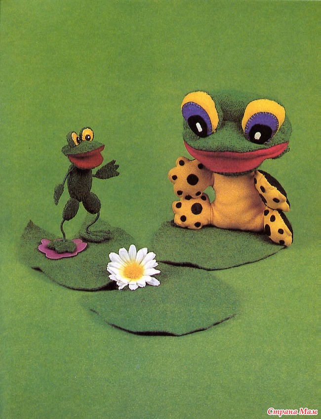 туловище- спинка, голова, лапки, ступни, подглазники - драп (зеленый, коричневый).