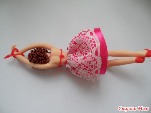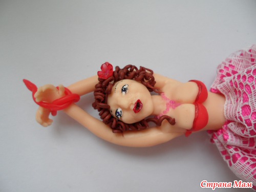 я сначало хотела чтобы она просто держалась за верёвочку на каторой будет висеть -- руками но по ходу работы поняла что это будет неочень смотрется вот и решила связать ей руки