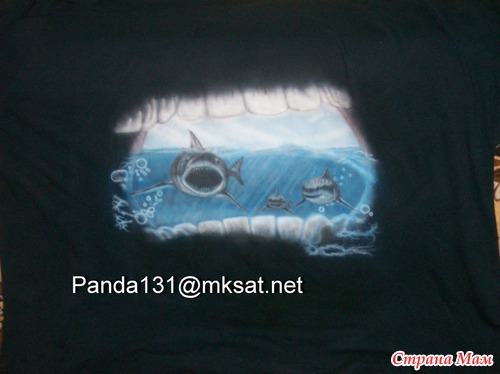 . Вот, сотворилась у него такая работка, которая мне понравилась. Эту футболку он разрисовал для себя, а то был как сапожник без сапог