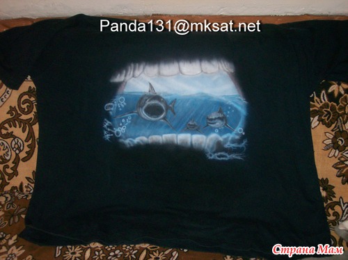 . Вот, сотворилась у него такая работка, которая мне понравилась. Эту футболку он разрисовал для себя, а то был как сапожник без сапог