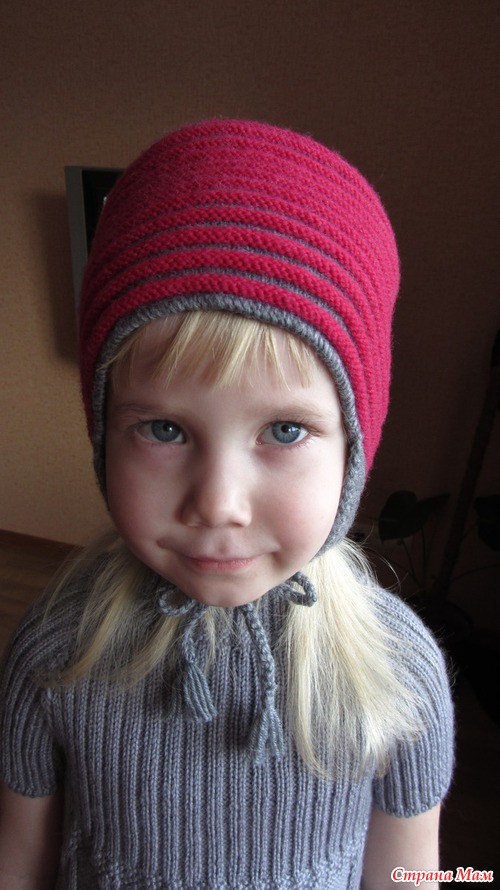 Связала вот такую шапочку для старшенькой, моделькой выступает младшая. Старшая в саду. Дочка занимается бальными танцами и возник вопрос куда прятать нашу прическу(пучок)т. к все шапки в облипочку. Задумка удалась. Будет еще подклад. Ниточки 100%шерсть BIANCA