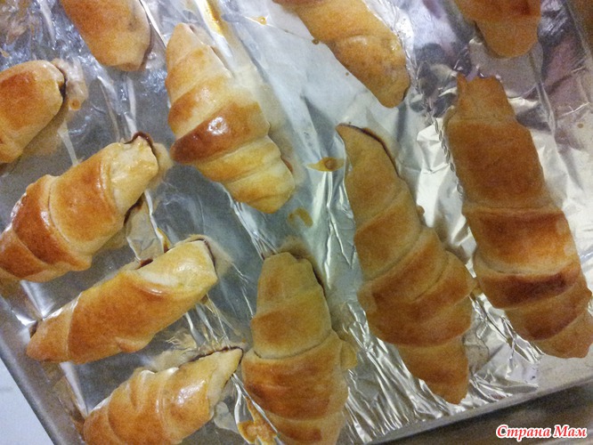 В общем была жутко расстроена. А тут мой маленький деть залезает на заборчик между залом и кухней и смотря на что я делаю говорит -" ка’ка - кака- кака-ка’ка..." (в каждом третьем кака у него ударение такое смешное на первую ка, а в остальных на последнюю!!!)вот и думай то ли смеяться то ли плакать, не получалось аж плакать хотелось, а тут деть насмешил и сразу все заулыбалось. А рогалики получились ОТМЕННННЫЕ!!!
