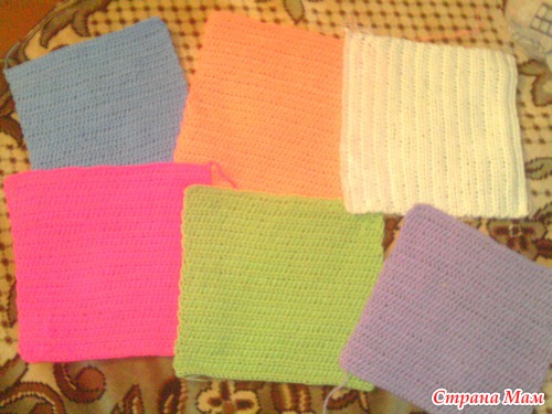 Нитки взяла простые, их у нас продают на рынке по 20-25 рублей, говорят, что полушерсть 100 гр. Сначала вяжем грани для кубика. Я вязала 13,5см*13,5см (15*15 см), столбиками с накидами (набирала где-то 32 петли)Я связала все стороны кубика.