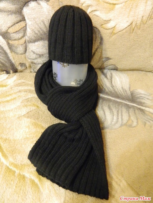 Это комплектик для мужа (правда, связан еще прошлой зимой) - этот шарф 2х метровый меня просто замучил (вязать долго и не интересно), а мой благоверный его так ни разу и не одел... Буду теперь этой зимой к ниму с шарфом приставать...