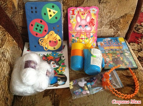 Сегодня мы получили свой первый подарочек к первому дню рождения от Кати http://kakaushko.stranamam.ru/ и ее сыночка Ванечки, нам все очень понравилось,