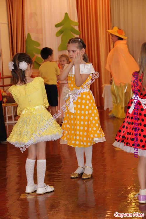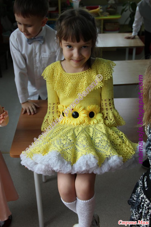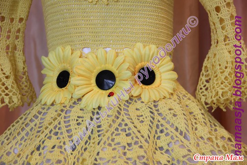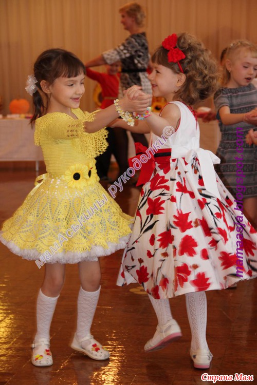 шел такой неспешный разговор о вязальном рукоделии. Честно говоря, больше всего я боялась за дочу... Но Красотка, в новом платье "подсолнух" вела себя очень даже достойно..