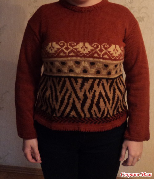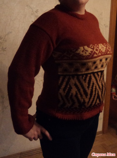 Страшно даже сказать сколько этот свитерочек пролежал в шкафу... наконец-то... я с ним рассталась... вязался до беременности, дочке уже 8 лет... я из него безнадёжно выросла, а надо было лишь вшить рукава и горловину связать... благодаря Ксюше и "В новый год без ДОЛГОВязов" он увидел свет и подарен сестре...