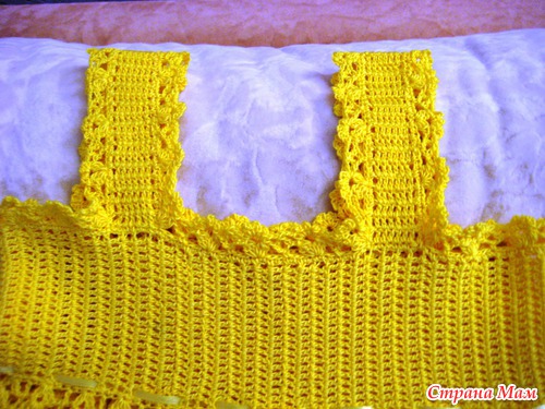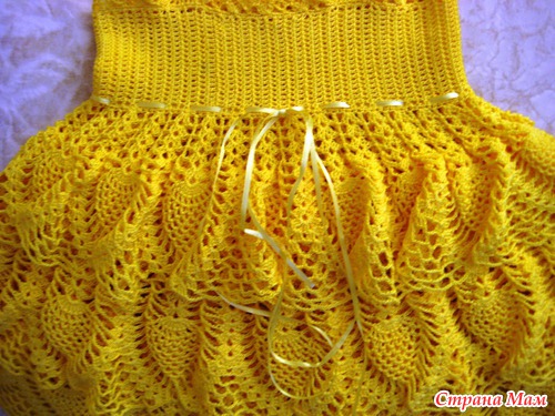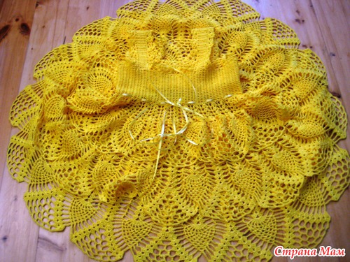 из ниток Анна 16 длиной 530*100 в количестве 3 мотков крючком 1,25 связался прекрасный наряд для девчушки... желтые ананасы на пышной юбке, надеюсь, понравятся моей внучке