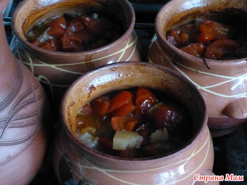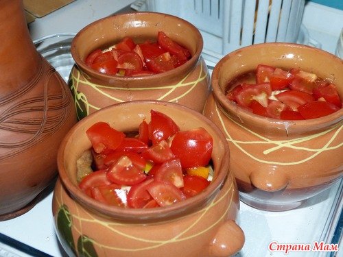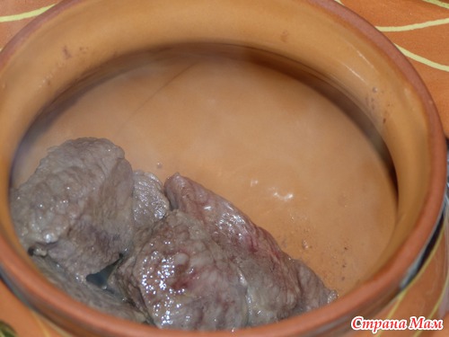 Мясо в горшочках (без майонеза и сыра)
