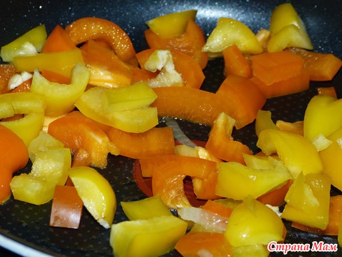 Дальше овощи обжарим в той же мы сковороде.