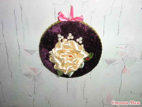 Два диска, два круга вырезаете из ткани, на одном сначало вышиваем ленами что хотим. Затем по краю круга собираем на нитку ложим диск и стягивае нитки, получается диск в затянутом мешочке, так же второй, затем потайным швом сшиваем два диска по кругу. Отделываем шнуром, делаем петельку. Если не понятно спрашивайте.