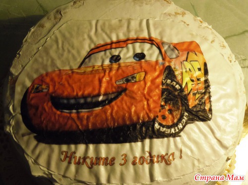 Стала над ним в ступоре : "Что делать? Что делать?" - другой картинки нету, рисовать что то времени нет. Стала утюжком для мастики потихонечку разглаживать, за утюжком стала тянуться краска и пошли мелкие трещинки. Короче жуть.Всегда брала вафельные картинки и все нормально было. А в этот раз мне пришли какие то не вафельные, а на рисовой бумаге -я так подозреваю - беленькая полупрозрачная, тонюсенькая основа ( хотя у продавца написано что у неё вафельные картинки), да и еще из всех картинок именно на Маквине на капоте была небольшая трещина - обидно ужасно