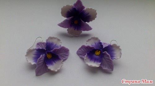 Серьги и кольцо с орхидеями (Браслет пока не хочет собираться))))