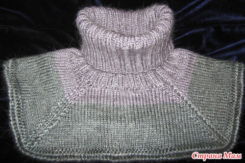 Нитки ангора рам в 2 сложения, набрала 104 петли и вязала на спицах вкруговую 17 см, резинкой 2х2, разделила вязание на 4 части и дальше по описанию http://iloveneedlework.ru/vjazanie/svyazannaya-spitsami-manishka