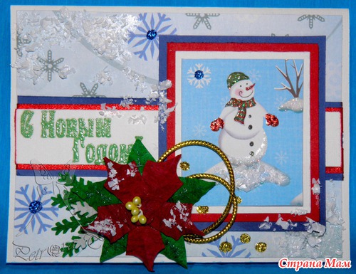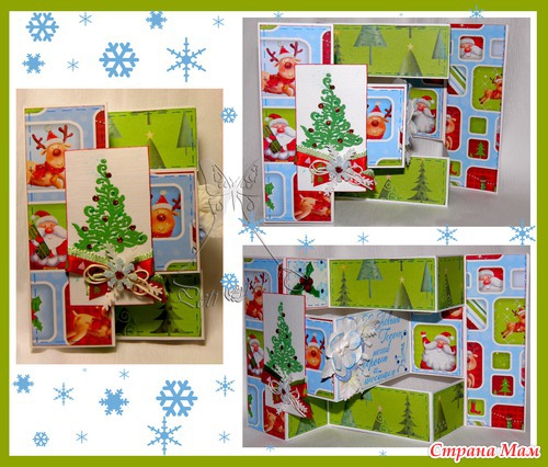 Эту открытку делала для мужчины. Просили необычную, но с Новым годом. Вот что получилось. И бумажка шикарная и елочка мне очень нравится