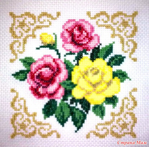 Девочки, давно приглянулась мне эта https://www.stranamam.ru/photo/4403719/#photo подушечка и решила вышить. Вышивала с удовольствием, наверное за 2 недели. Правда, не все номера ниток нашла и использовала китайские ниточки без номера. Остается найти подходящую ткань и сшить диванную подушечку. Vervaco