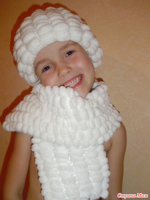 А этот комплект довязала сегодня - назвала "Снежный". Использовала попмонную пряжу от Назар, подклад - столбики с накидом из полушерсти