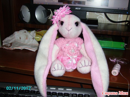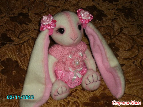 Но срочно потребовалось сшить в подарок зайку (обещала, а обещание надо выполнять!) и вот, получилась такая девчушка... Самой даже понравилась, но в первую очередь радует то, что получательница подарка в восторге - мне это очень приятно!
